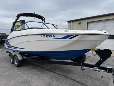 Experience the perfect blend of performance and family-friendly comfort with this like-new 2018 Yamaha AR240. At 24.0 feet long and driven by a potent 360-horsepower Yamaha marine jet engine, the AR240 delivers blistering acceleration, nimble handling and the shallow-water versatility of jet propulsion. Thoughtfully designed for days on the lake, this model offers a spacious cockpit, modular seating for socializing or towing, generous storage, and a swim platform that makes water access effortless. Located in Branson West, MO (Stock #: C31L718), this AR240 is ideal for boaters who want sporty performance without sacrificing onboard comfort.