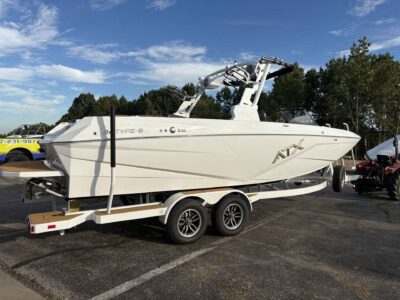 The 2026 ATX 24 TYPE S is a performance-driven wake and surf boat built to deliver surf-ready waves and premium on-water comfort. Powered by a stout INDMAR engine producing 400 horsepower, this new 24.0 ft platform blends responsive handling with industry-leading surf and ballast technology to give riders clean, customizable waves and riders confidence on every run. Located in Branson West, MO (Stock # T7EI526), this ATX 24 Type S is ideal for families and thrill-seekers who want modern styling, durable construction, and the inboard power to tow, surf, and cruise with ease.
