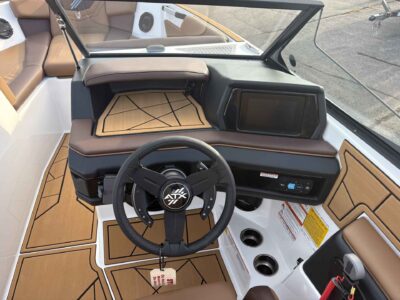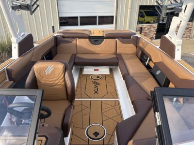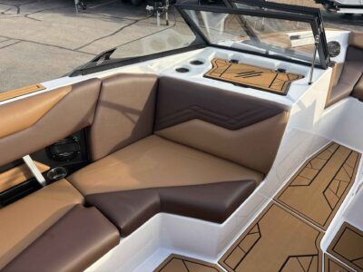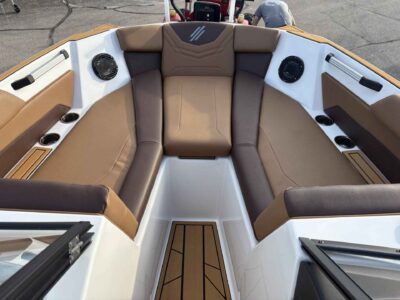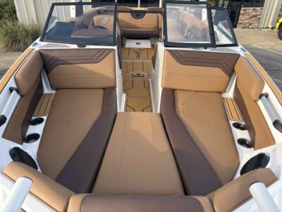 - Deck & Comfort Features: Premium cockpit and bow seating, integrated swim platform, and board/tower equipped for watersports